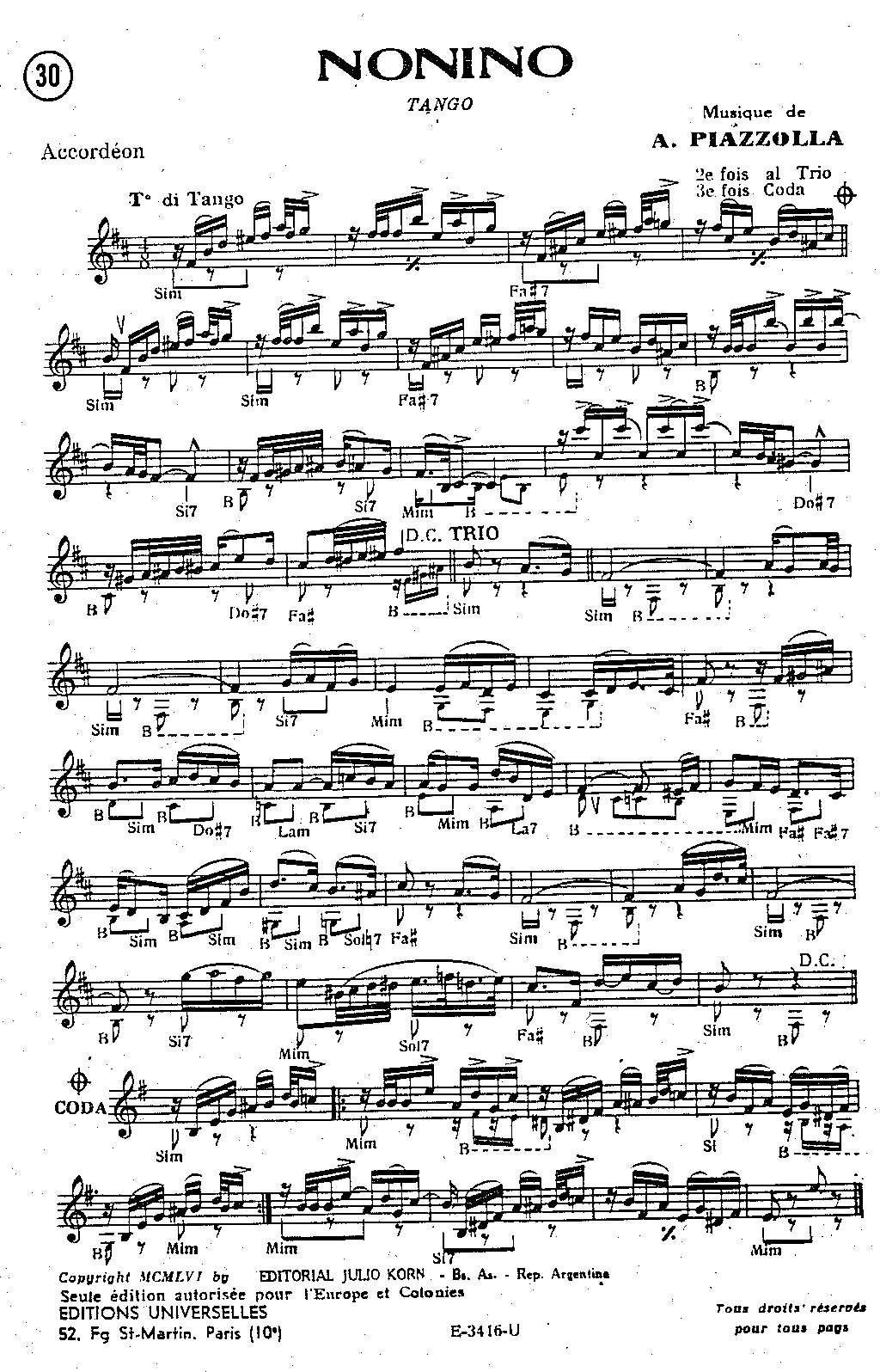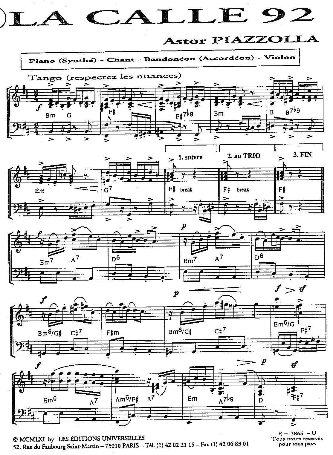 | Piano, Contrebasse, Guitare, Bandonéon A, Bandonéon B, Violon A, Violon B | |||||||||||||||||||||||||||||||||||||||||||||||||||||||||||||||||||||||||||||||||||||||||||||||||||||||