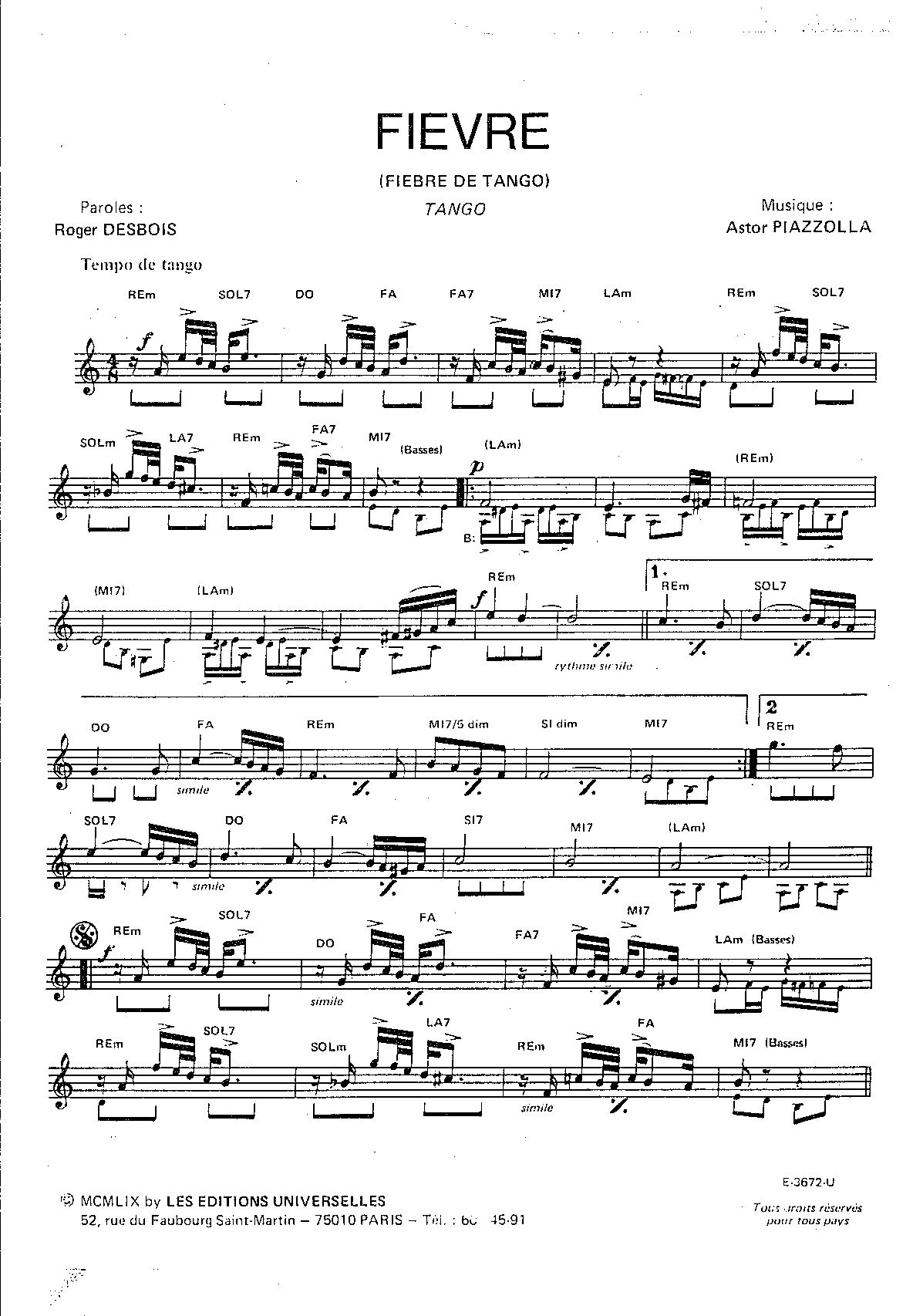 | FIEVRE | TANGO CHANTÉ |