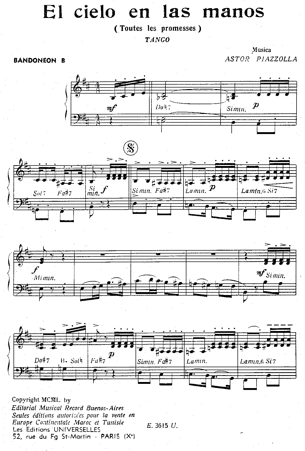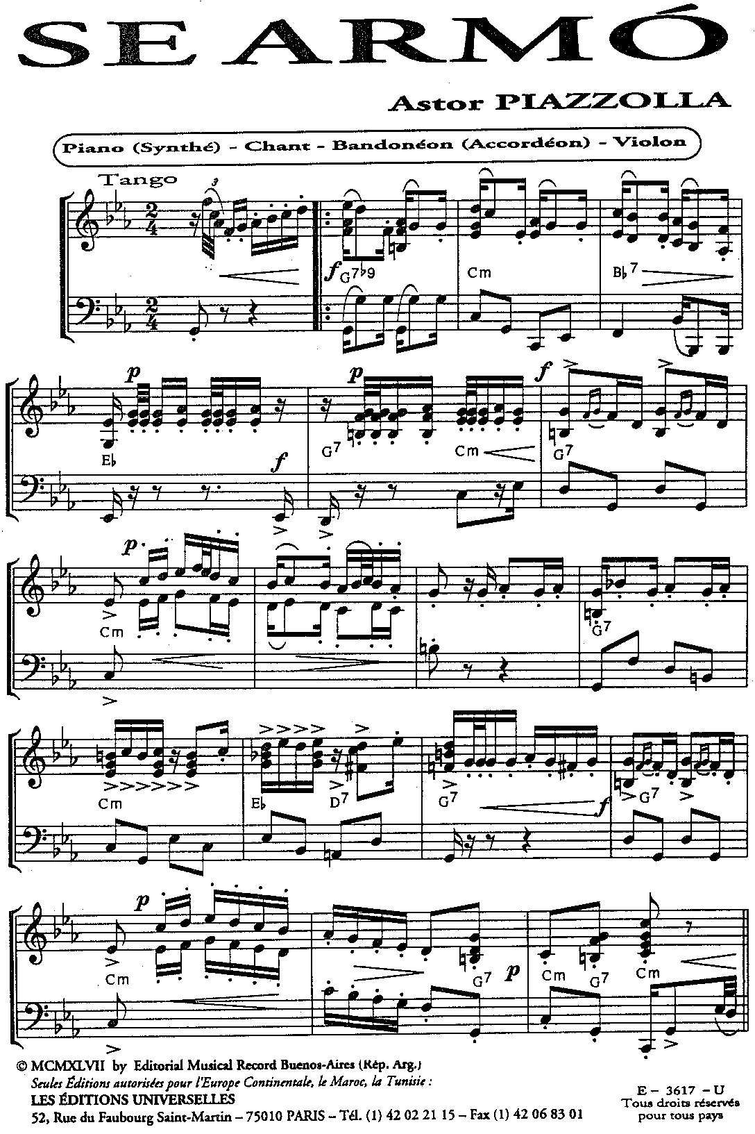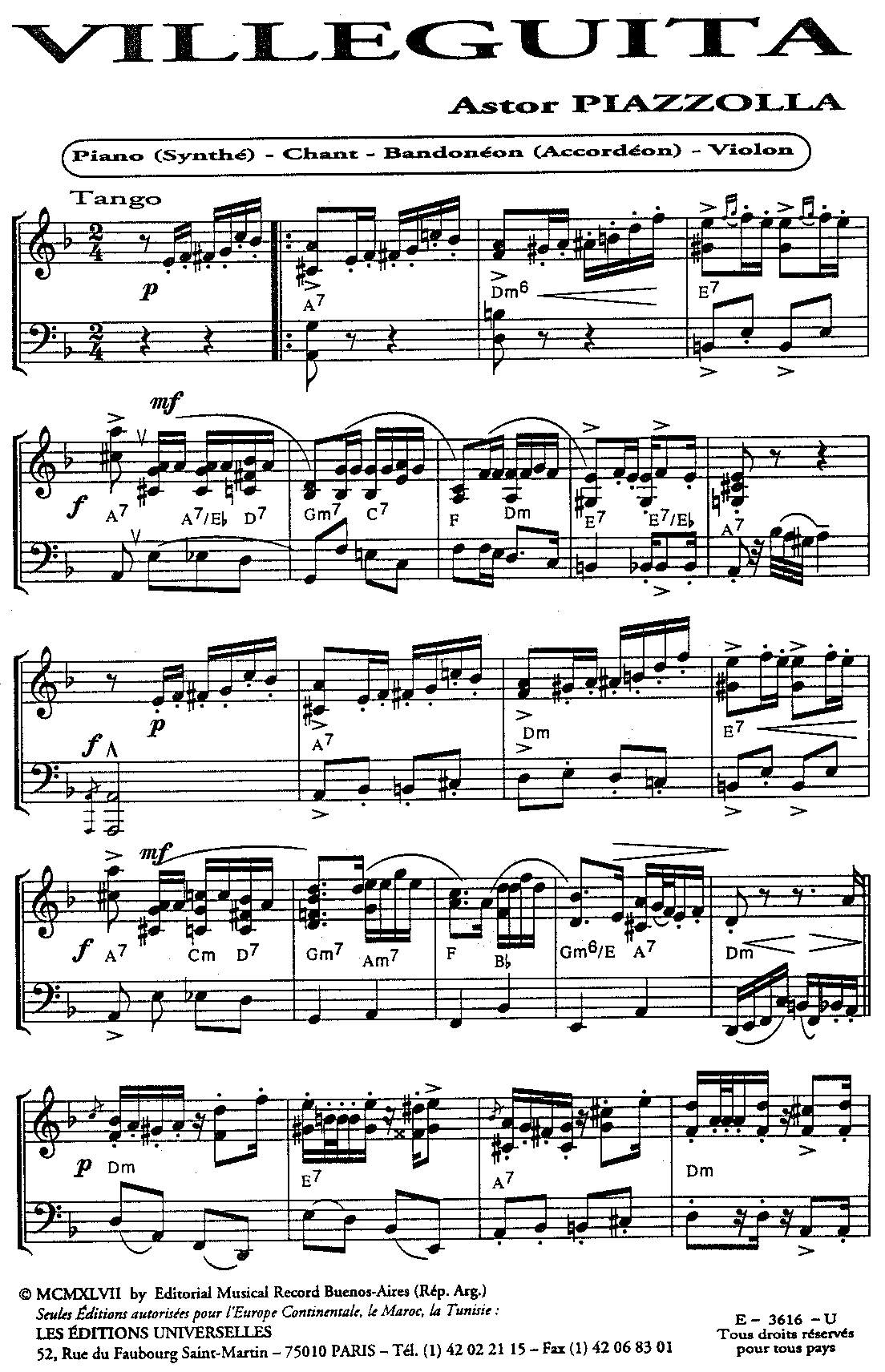 | Piano, Contrebasse, Guitare, Bandonéon A, Bandonéon B, Violon A, Violon B | |||||||||||||||||||||||||||||||||||||||||||||||||||||||||||||||||||||||||||||||||||||||||||||||||||||||