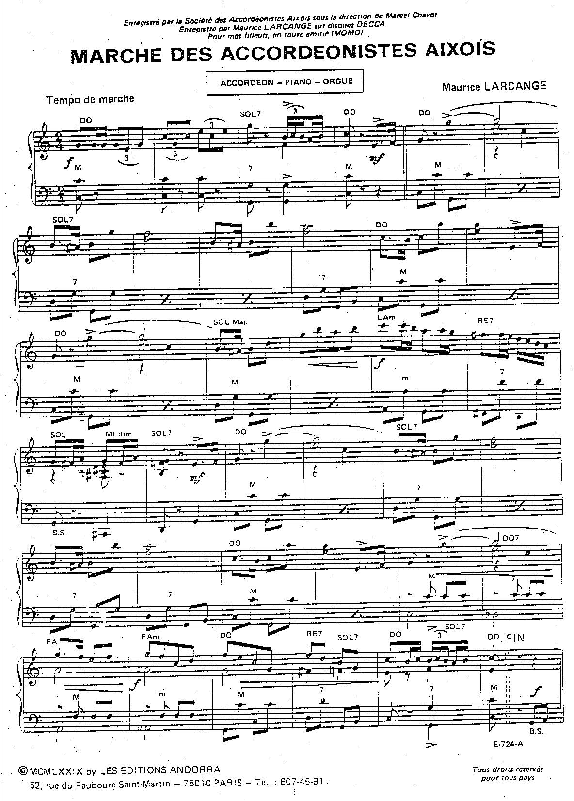 | MARCHE DES ACCORDEONISTES AIXOIS (LA) | MARCHE |