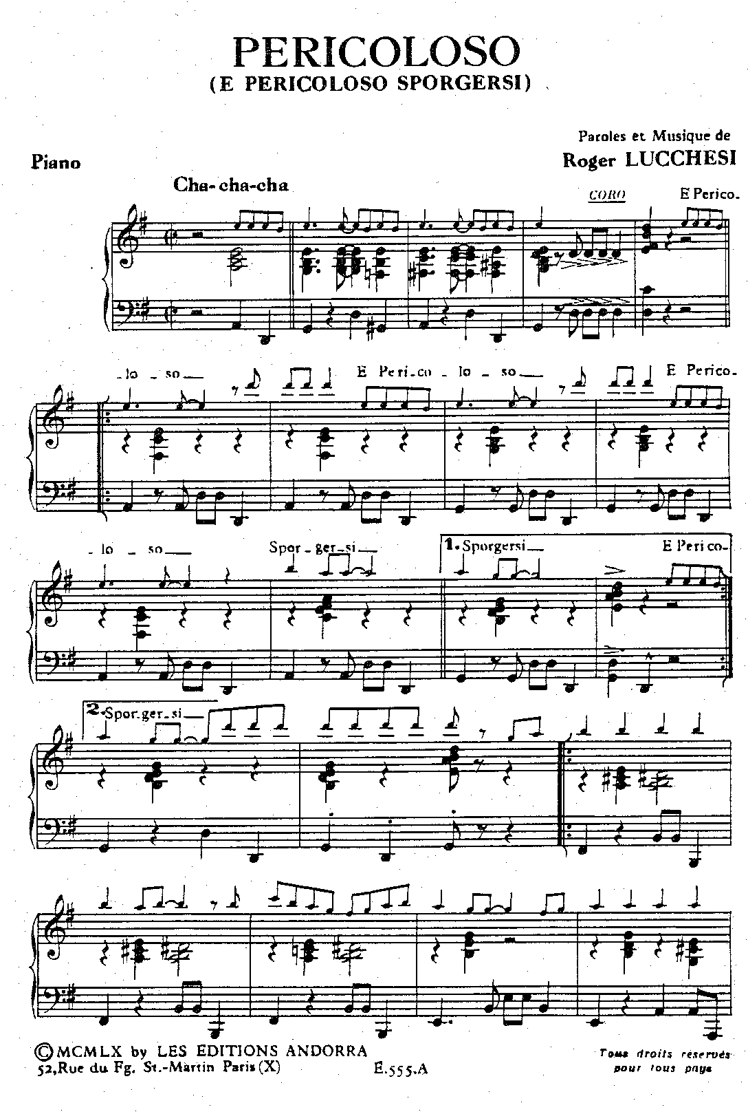 | CHA CHA CHA | PERICOLOSO (E PERICOLOSO SPORGERSI) |