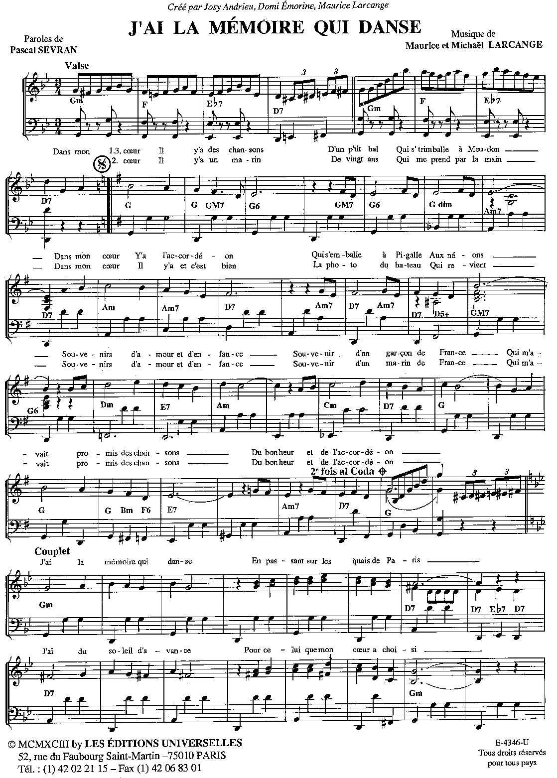 J\'AI LA MEMOIRE QUI DANSE
