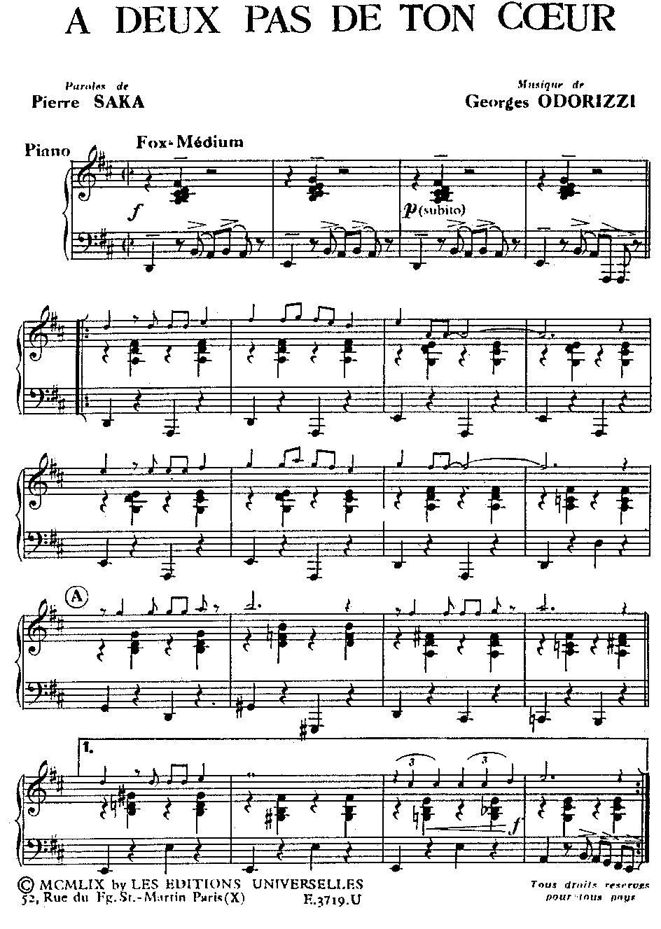 | FOX | A DEUX PAS DE TON COEUR |
